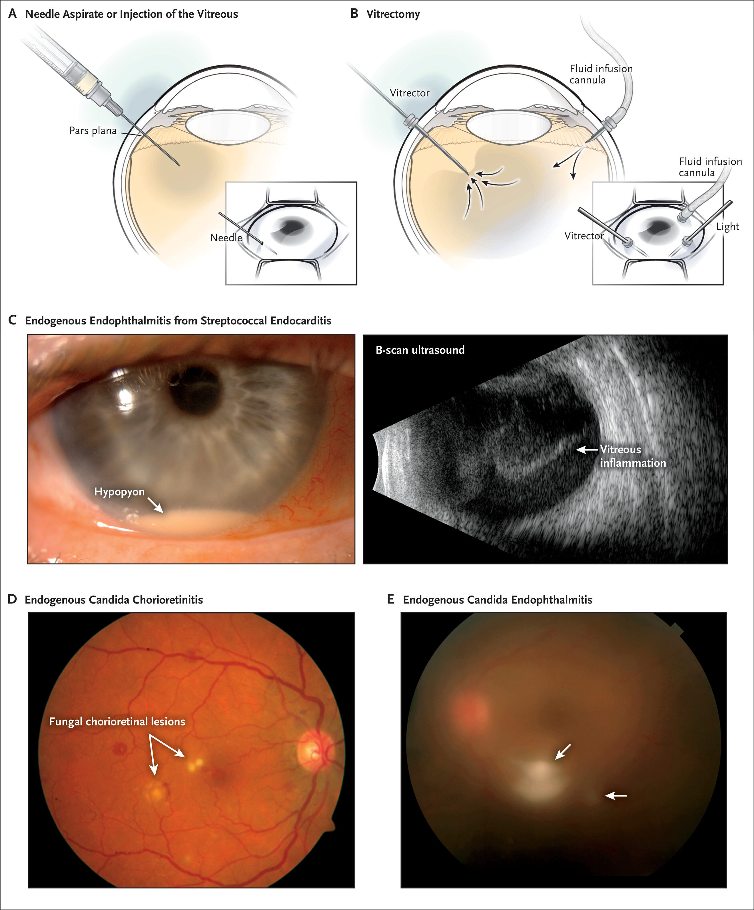 جزء اصلی درمان، تزریق آنتیبیوتیک داخل زجاجیه است.