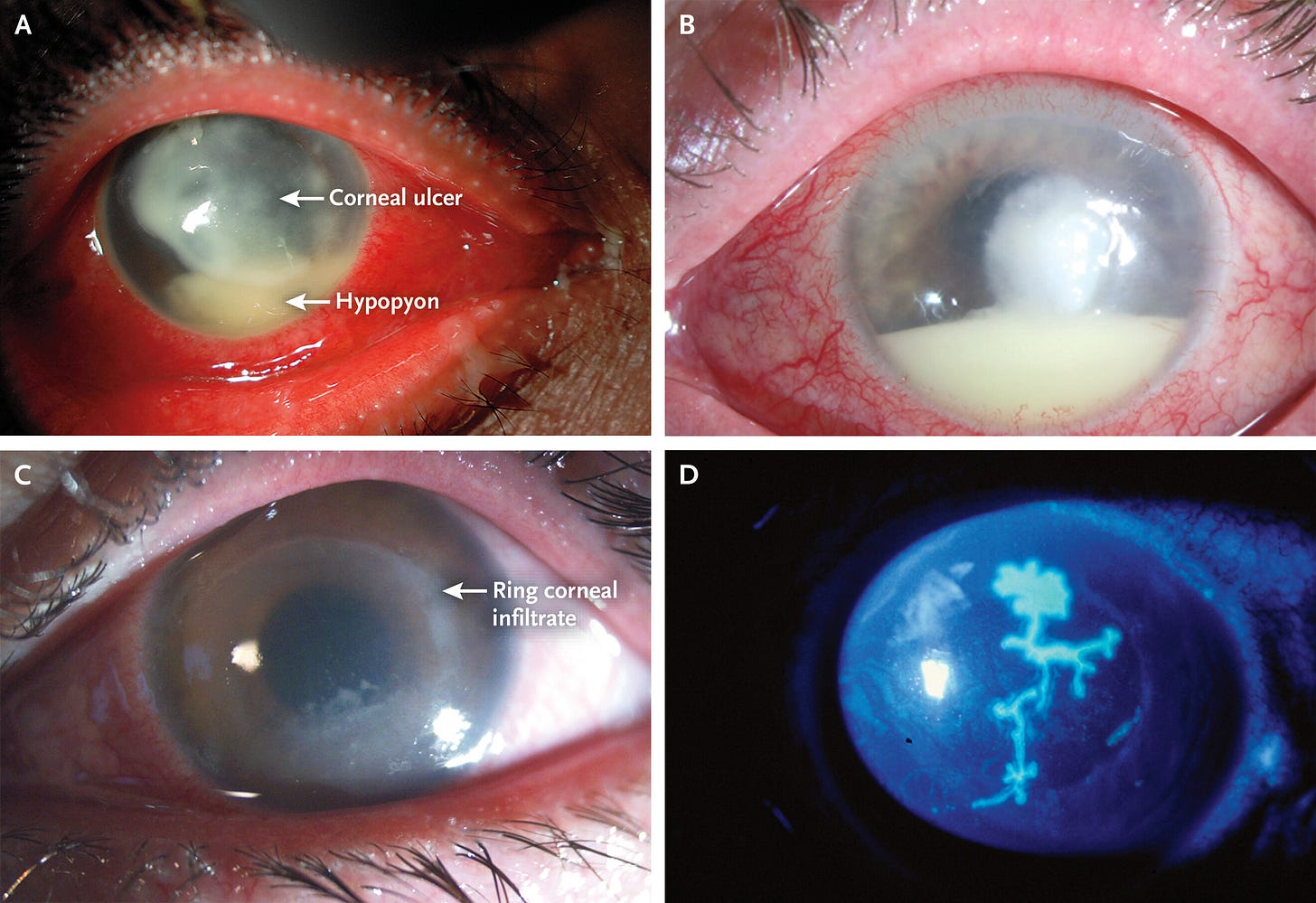 کراتیت ناشی از آکانتامبا و کپکها بسیار سخت درمان میشوند و اغلب پیشآگهی ضعیفی دارند.